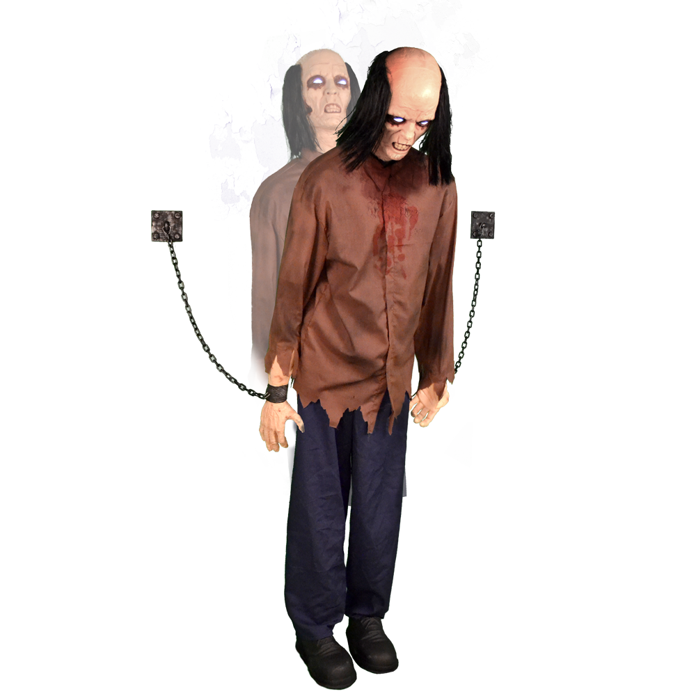 Will this Zombie break free and attack?! This undead creature wants to be free of his chains and his grotesque features, scary groans and light up eyes make him the perfect addition to any ghoulish scene.