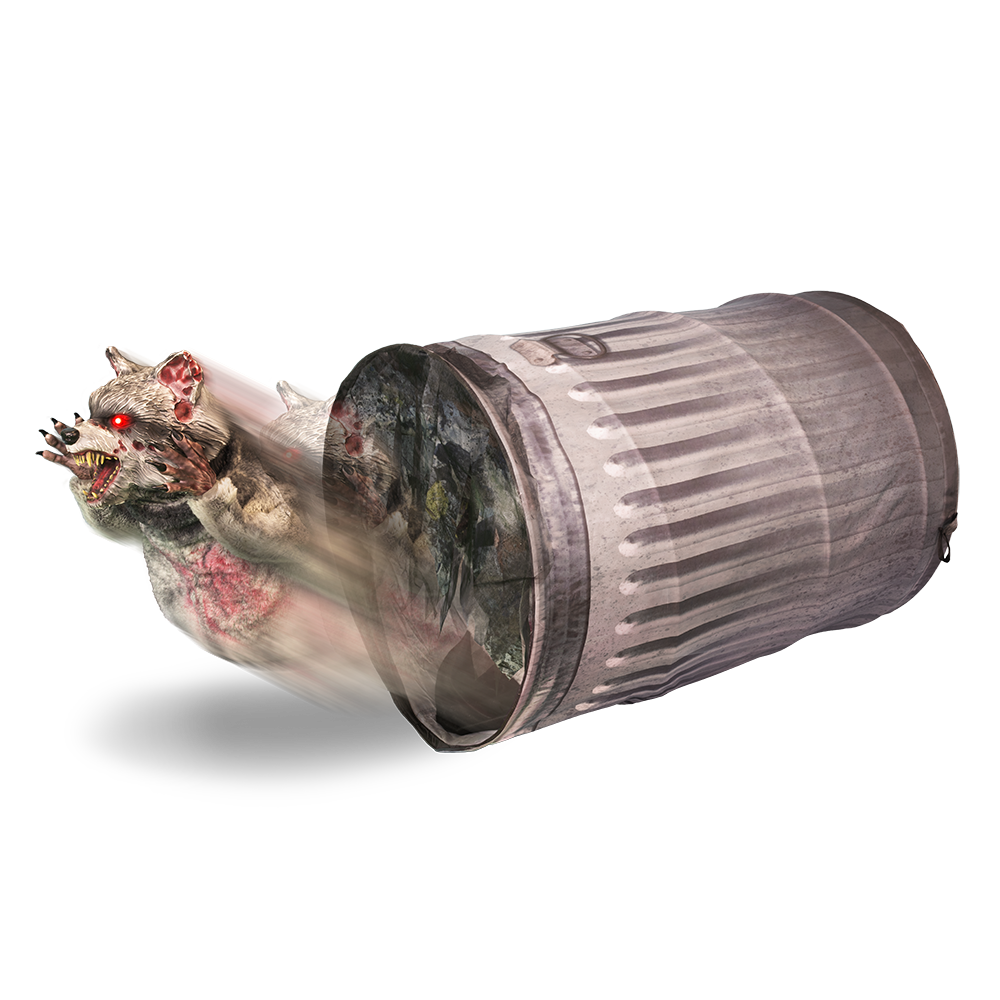 Rabid zombie raccoon strikes fiercely from his trash can haunt!