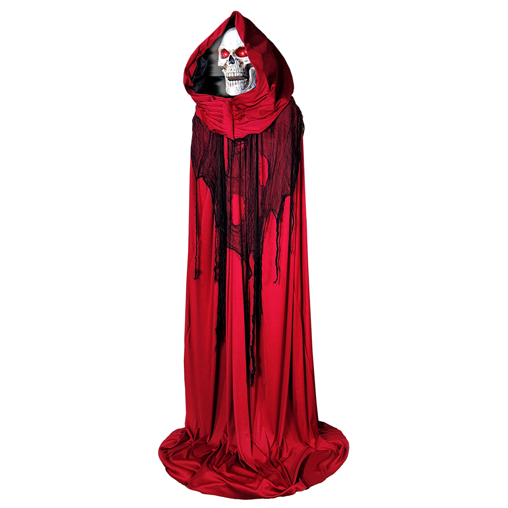 Greetings from the GRAVE! Crimson-cloaked skeletal