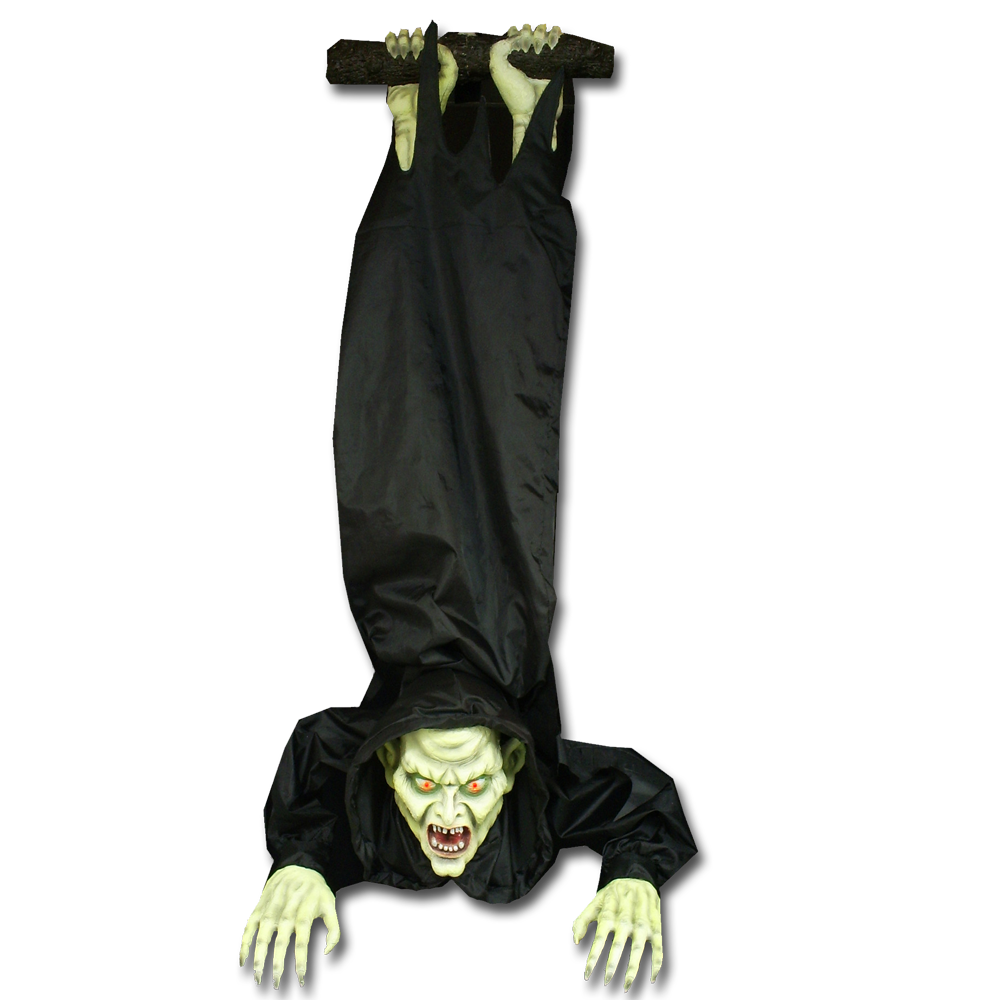 Hang This Vampire Up In Your Tree And Watch Him Wait For His Next Victim. When Someone Approaches The Vampire Makes Horrific Sounds While Rocking Back And Forth.