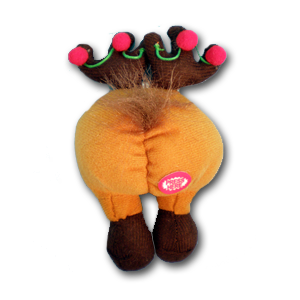 Squeeze this little reindeer tush for a "tootin' tune"